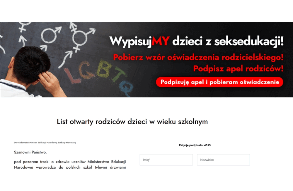 Rodzicu podpisz apel i wypisz dziecko z edukacji zdrowotnej!