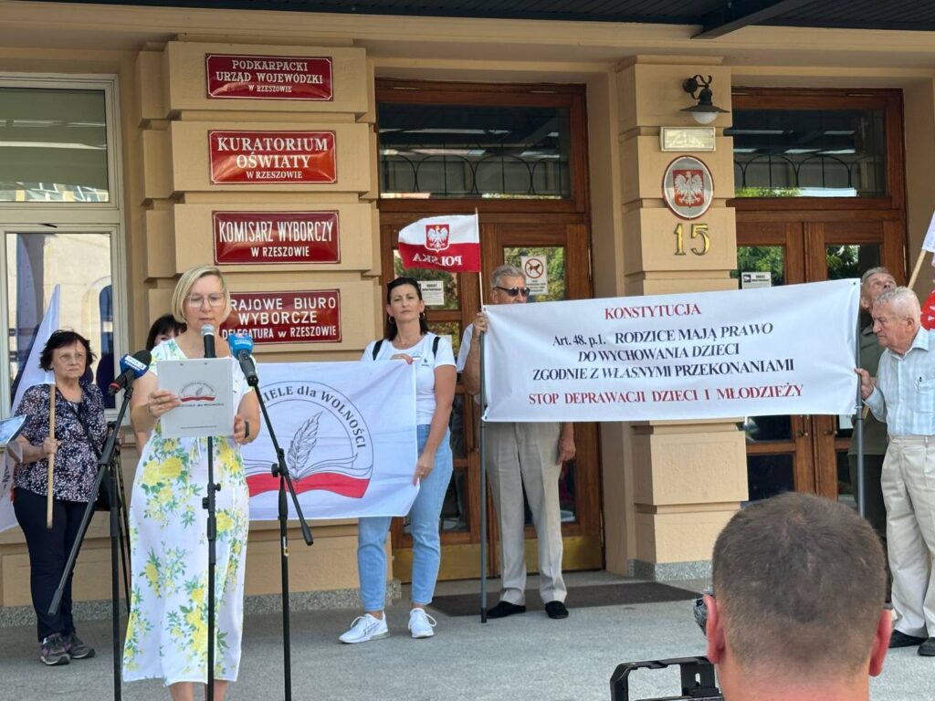 W trakcie pikiety przemawiała Liliana Maciąg- Witkowska – pedagog i nauczyciel edukacji domowej. Poruszyła temat edukacji zdrowotnej, seksualizacji, ustawy o korzystaniu z pomocy psychologicznej bez wiedzy rodzica oraz ograniczeń finansowania w edukacji domowej.
